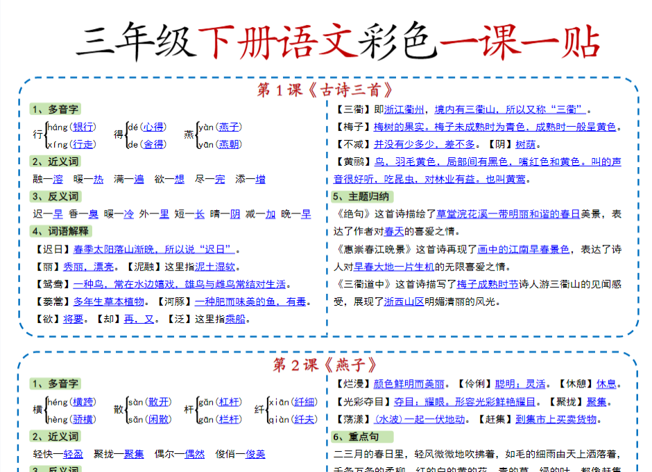 | ⏰限时免费领取!点击即存→新版三下语文彩色一课一贴(高清打印版)助孩子成绩稳步提升!错过再无! | |