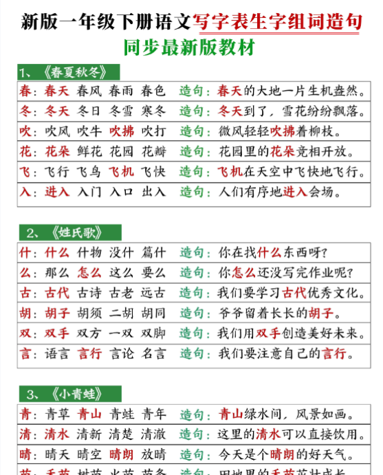 | 【极速下载通道】2025春新一下语文写字表生字组词造句高清版 → 一键保存,立即打印! | |