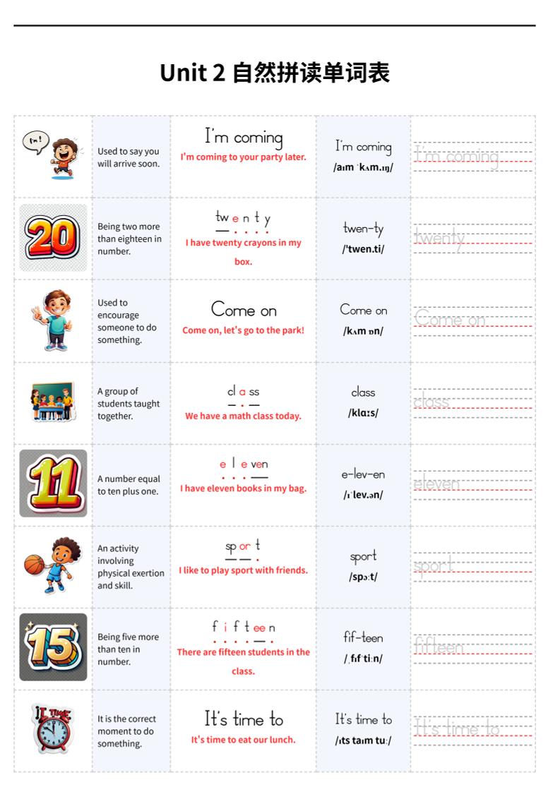家长心态引导 | 建议家长以“任务陪伴者”而非“检查者”角色参与,鼓励孩子通过拼读规则“破译”新单词,用单词创编小故事或对话(如描述宠物习性、记录天气变化),将词表融入日常场景,既巩固学习成果,又培养其信息整合与应用能力,助力孩子从“会认词”向“会用词”进阶。 |