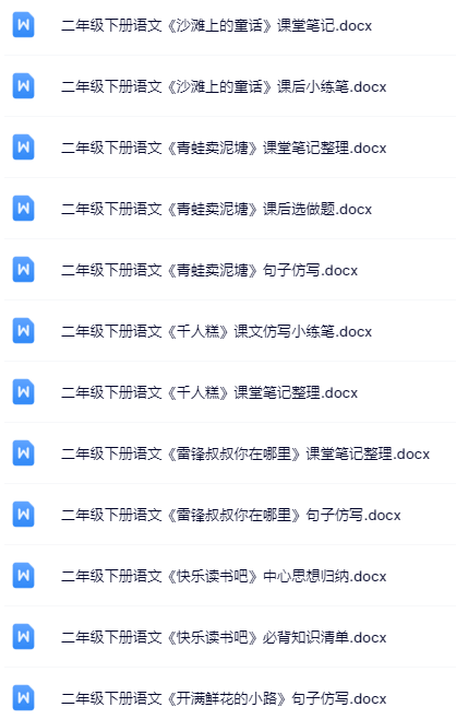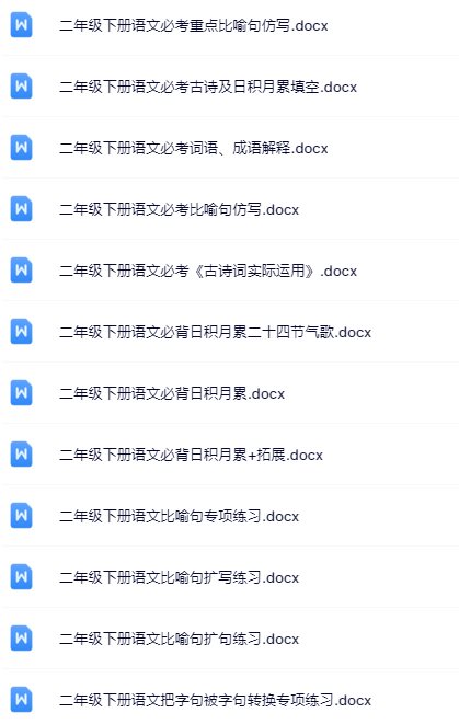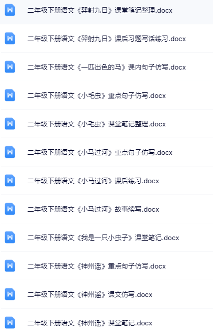 | 🚀立即一键打包下载,免费获取100套二年级下册语文优质无水印资料,抢先为孩子锁定学习高分路径! | |