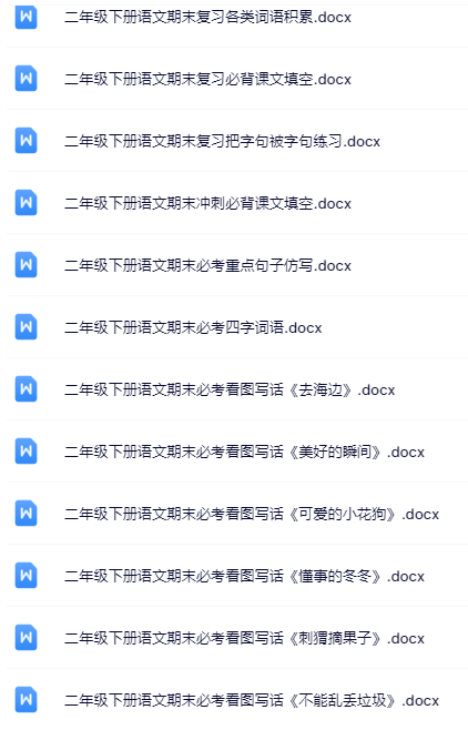 | 【立即一键打包下载】二年级下册语文100套无水印精品资料,0广告、0杂质,助孩子冲刺95+! | |