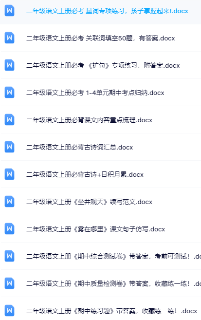 | 100套打包!二年级上册语文精品资料一键打包下载【只提供优质无水印资料打包】——海量高清讲义+专项训练题+配套课件,⏱️极速下载通道,立即锁定完整教学资源库,助力孩子语文成绩全面飞跃! | |