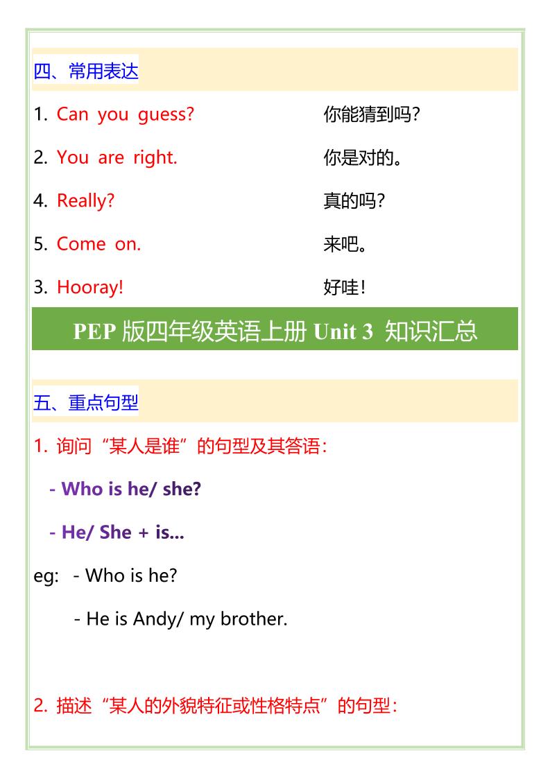 【2025秋新版】PEP版四年级英语上册Unit3知识汇总 | |