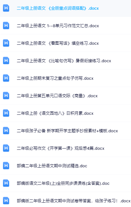 | 【限量优质无水印打包】二年级上册语文100套资源一键下载!错过再无!速存即得高分辅导力! | |