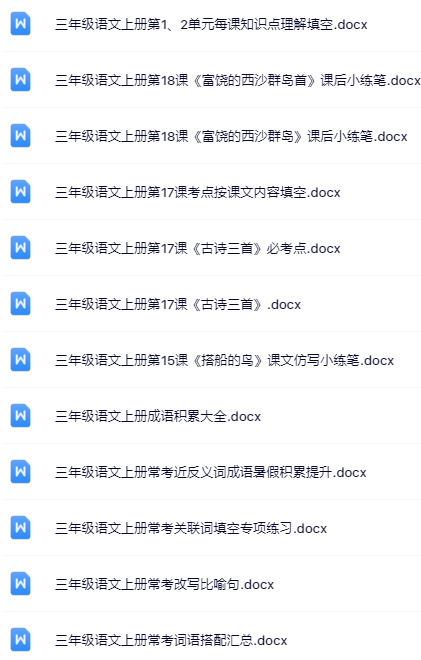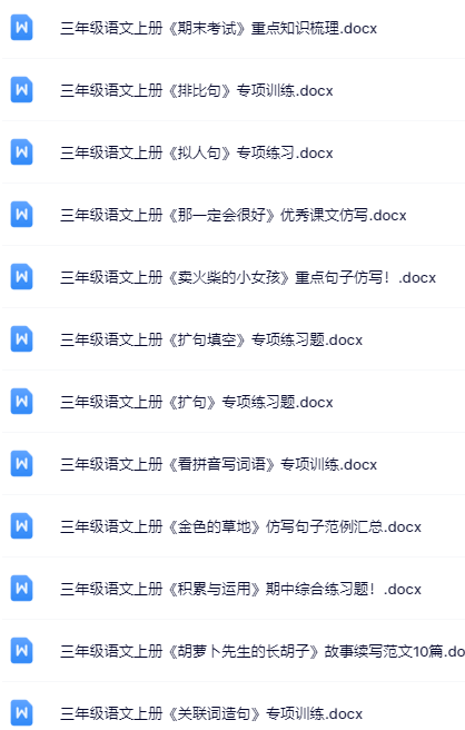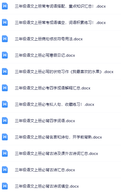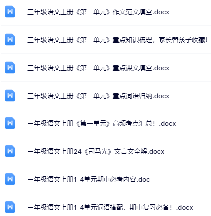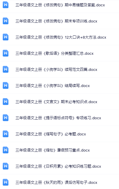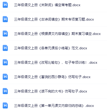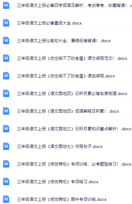 | 【三年级上册语文冲刺必备】100套精品资料一键打包下载,优质无水印极速到手,家长教师速存备用! | |
