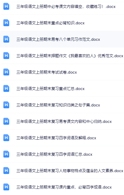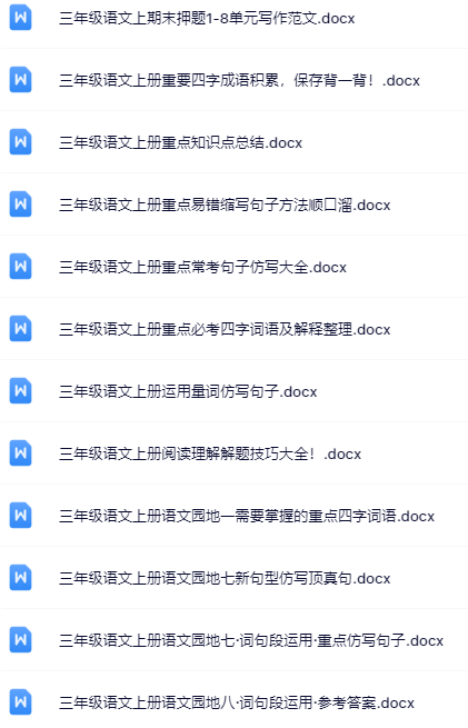 | 【立即点击一键打包下载】三年级上册语文全套优质无水印资料,100套高效学习资源0元秒存,领先一步赢在起点! | |