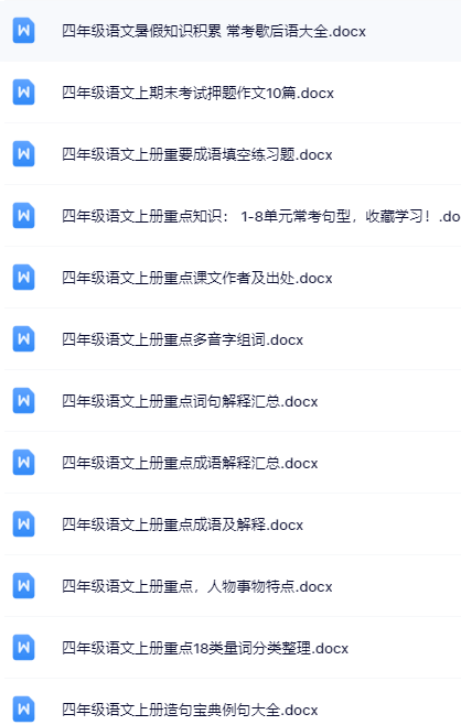 | 🚀立即一键打包下载四年级上册语文全套优质资料!让孩子领先一步,赢在起跑线!⏬ 支持高速保存+永久收藏,不怕错过好资源! | |