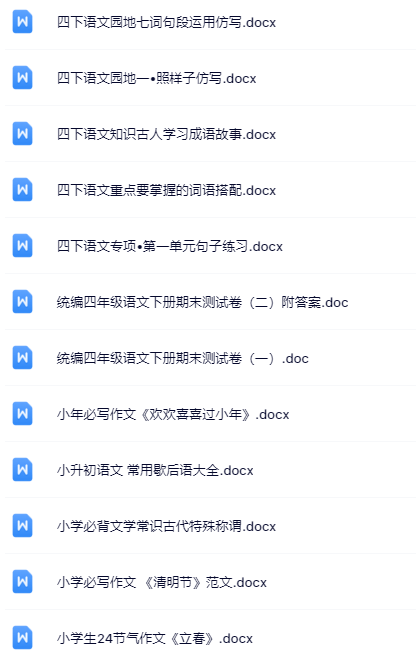 | 100套打包!四年级下册语文精品资料一键打包下载【无水印、高清可打印】 | |
