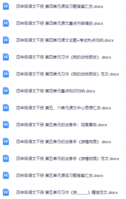 | 【立即一键打包下载】四年级下册语文全优资料库,100套无水印精品内容,备考提分一步到位!点击保存,马上获取! | |