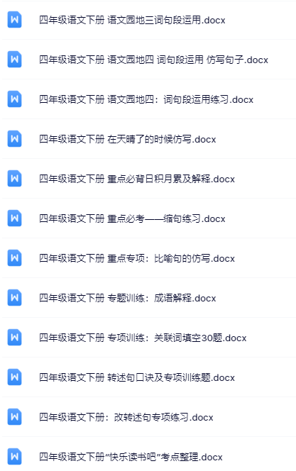 | 【立即一键打包下载】四年级下册语文全套精品资料,0添加0模糊,优质内容一键保存直达桌面! | |