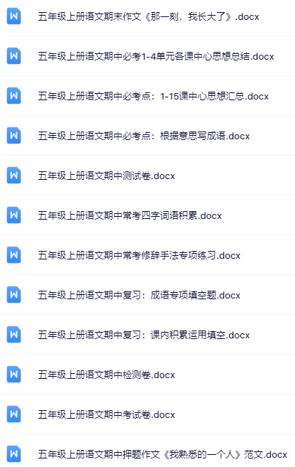 | 【立即一键打包下载】五年级上册语文100套精品资料全集(无水印高清版)— 高效学习,从这一键开始! | |
