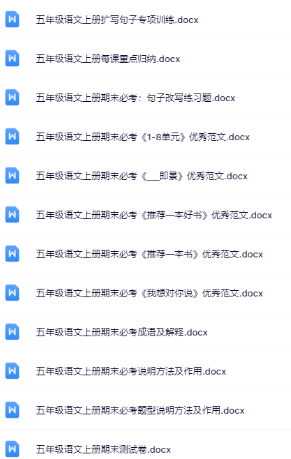 | 【极速一键打包下载】五年级上册语文全套精品资料,100%无水印优质内容,立即保存整套,轻松领先一步! | |