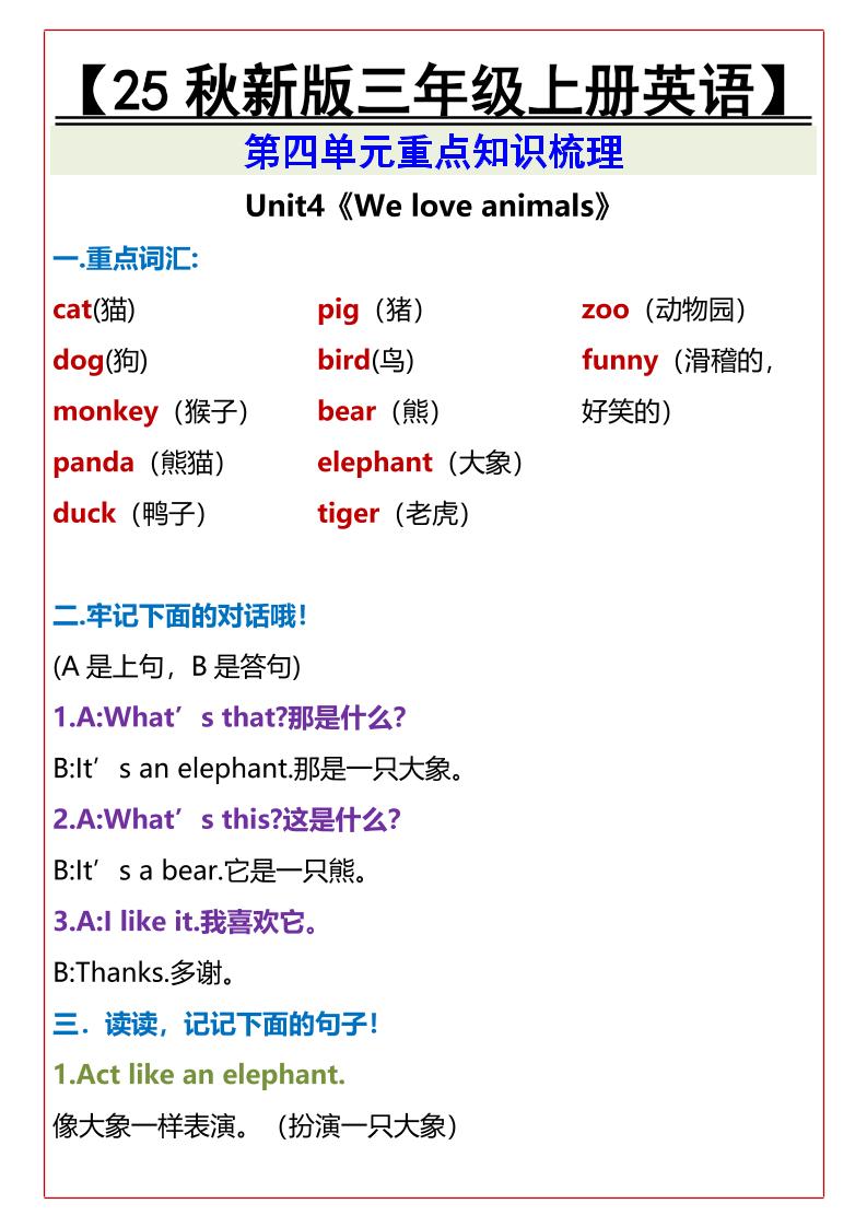 【2025秋新版】【三年级上册英语】第四单元重点知识梳理(内部精编) | |