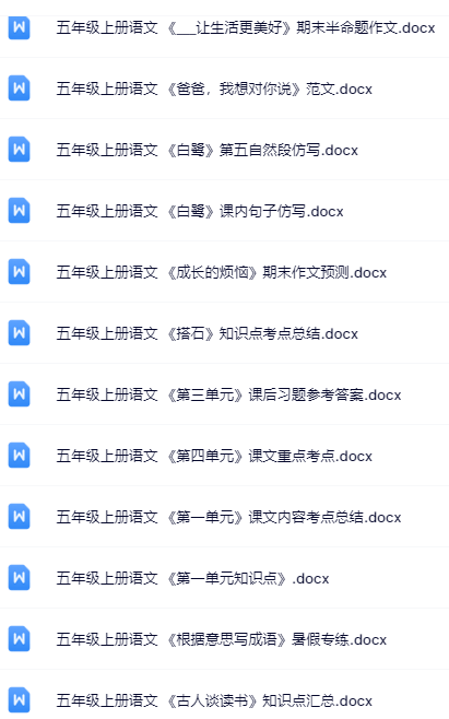 | 【立即一键打包下载】五年级上册语文100套无水印精品资料,全网独家优质资源,抢先获取,开启高效学习新篇章! | |