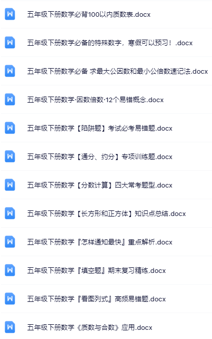 | 100套打包!五年级下册数学精品资料一键打包下载【只提供优质无水印资料打包】 | |