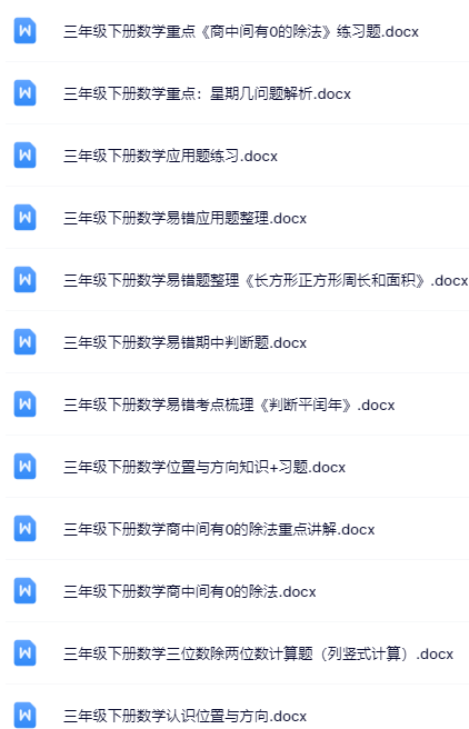 | 【立即一键打包下载】三年级下册数学66套精品资料,优质无水印,快速保存!助孩子轻松领跑新学期! | |