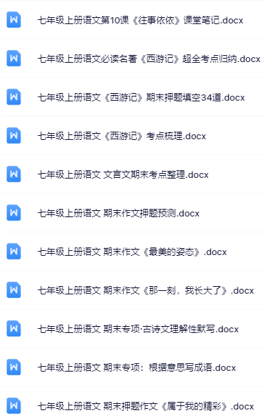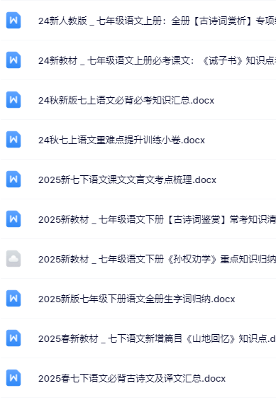 | 365套打包!七年级语文精品资料一键打包下载【只提供优质无水印资料打包】——每日更新教材笔记+教案课件+练习试卷,一键保存不排队,0秒极速获取权威学习资源,错过再无!点击立即下载稳稳提升语文成绩! | |