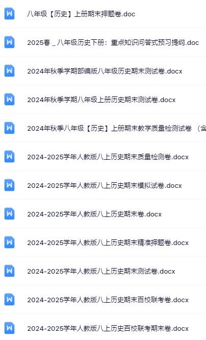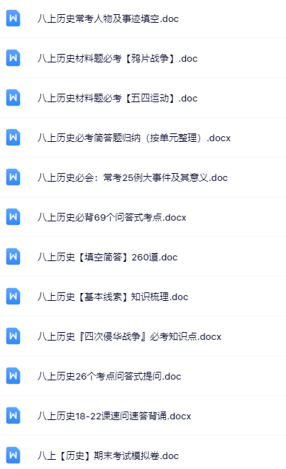 | 【限时开放】八年级历史全套精品资料一键打包下载!无水印·高清晰·秒获取,助力孩子快速提分、老师高效备课!立即点击保存! | |