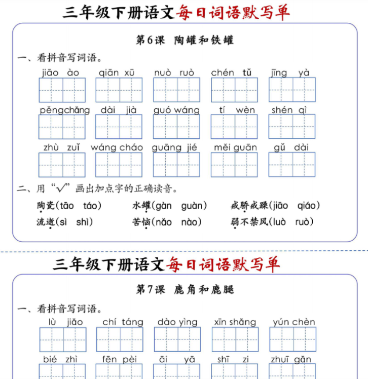 | 【20页】三下语文每日词语默写单(1-8单元完整版) | |