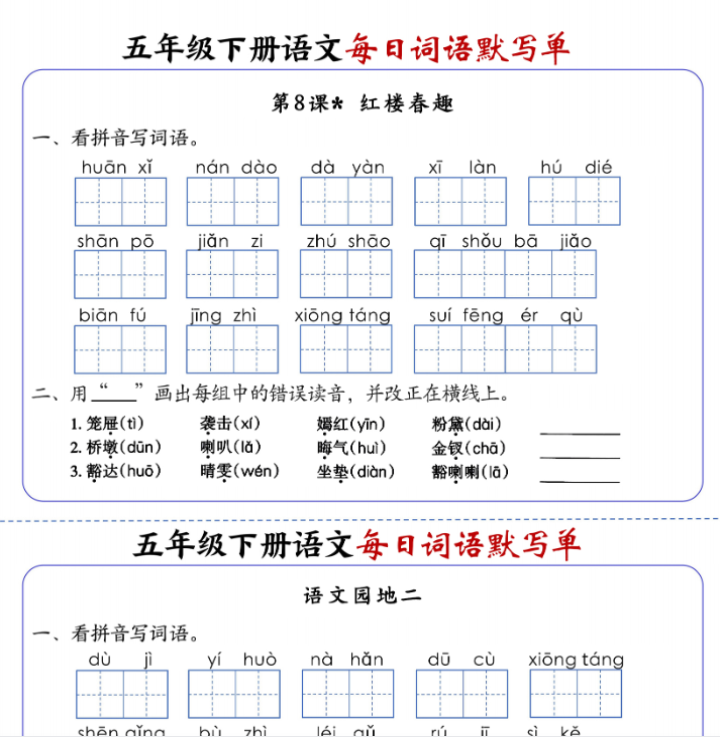 | 🚀立即一键下载,五下语文每日词语默写单(1-8单元)PDF高清版,告别手写整理,专注高效记忆!限时免费获取打印版! | |