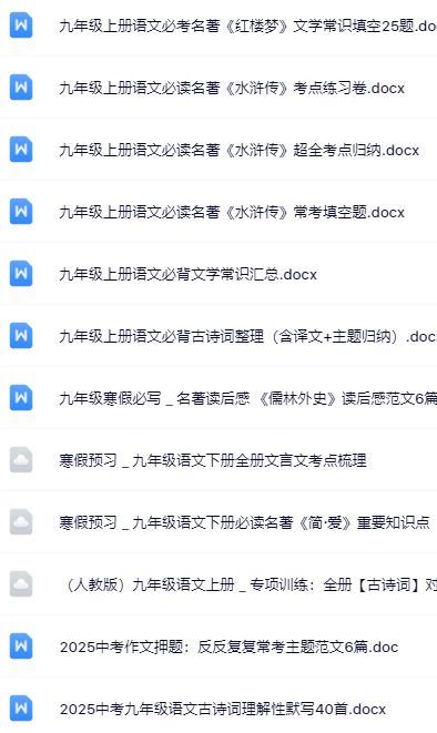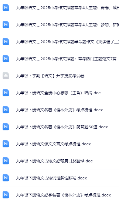 | 146套打包!九年级语文精品资料一键打包下载【无水印纯净版+即时秒存】——名师精编资源库,备考复习极速上手,错过再无!点击立即保存全套学习神器! | |