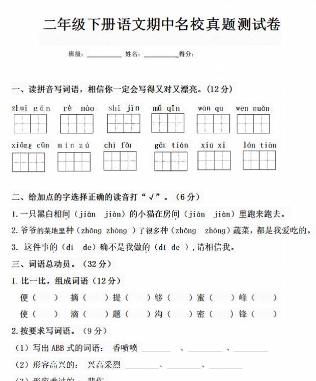 | 【立即一键下载打印】部编二下期中卷精编版,查漏补缺快人一步!限时免费领取电子版→ | |