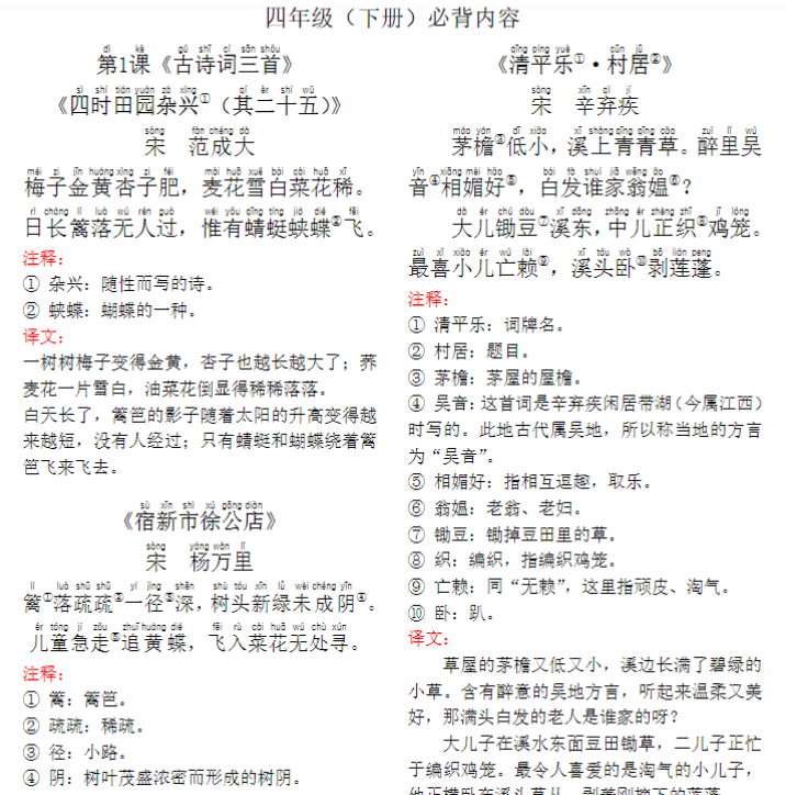 | 核心优势 |  📚精准对应四年级下必背内容:古诗词、名言警句、课文积累一网打尽 💡图解记忆法+思维导图辅助理解,告别死记硬背 💯附常考易错点解析+默写填空练习册,学生自查神器 ⏱️节省90%整理时间,老师家长一键发送至设备,秒速获取学习资料!  |