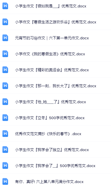 | 一键保存!小学六年级精品作文全套资料打包整理版,68类主题范文+满分技巧模板,写作逆袭速领!限时免费下载,错过再无! | |