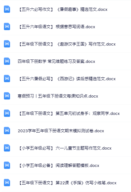 | 【五年级语文专属提分包】100套优质无水印资料一键打包下载,立即保存整套资源,开启高效学习模式! | |