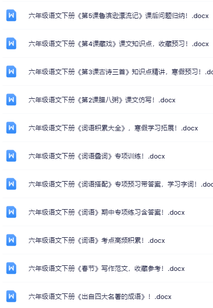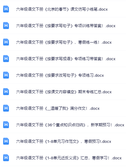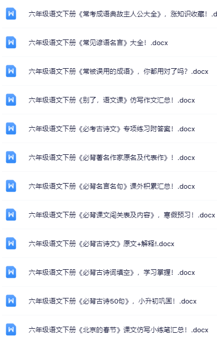 | 100套打包!六年级下册语文精品资料一键打包下载【只提供优质无水印资料打包】 | |