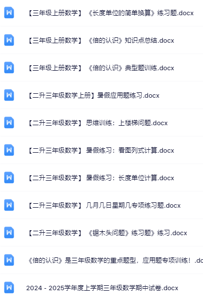 | 100套打包!三年级上册数学精品资料一键打包下载【只提供优质无水印资料打包】——告别杂乱,精准学习,一手掌握高效提升入口,点击即存>>> | |