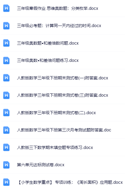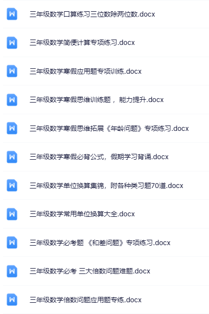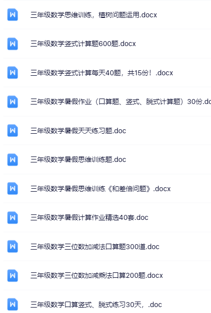 | 资源亮点 |  ✅ 100套完整精品汇总,覆盖全学期数学重难点 ✅ 官方教材同步配套,精准对标三年级课标 ✅ 全新无水印高清版本,清晰打印随时使用 ✅ 一键打包极速下载,省时省力高效获取  |