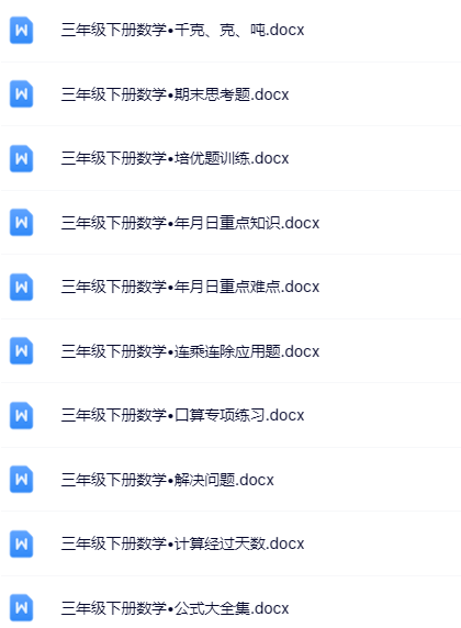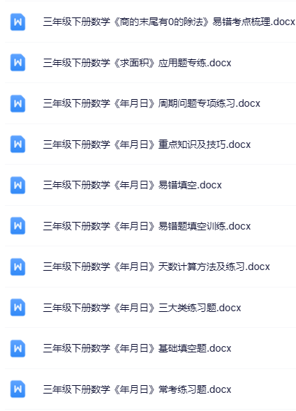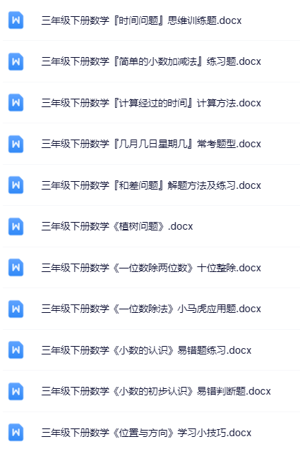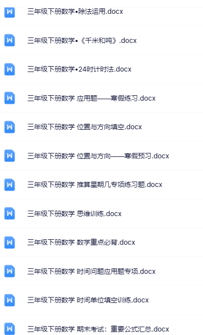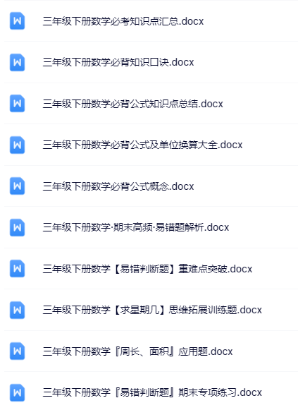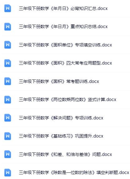 | 【立即一键打包下载】100套三年级下册数学优质无水印资料,全网独家精校套装,为孩子抢跑新学期!错过无补,秒存即刻! | |