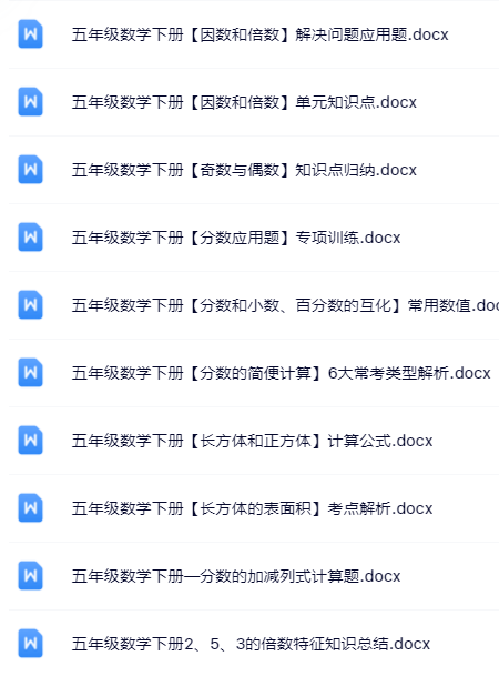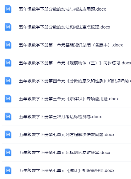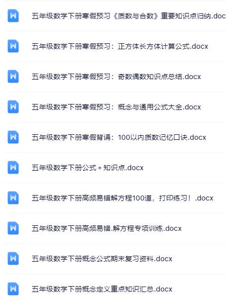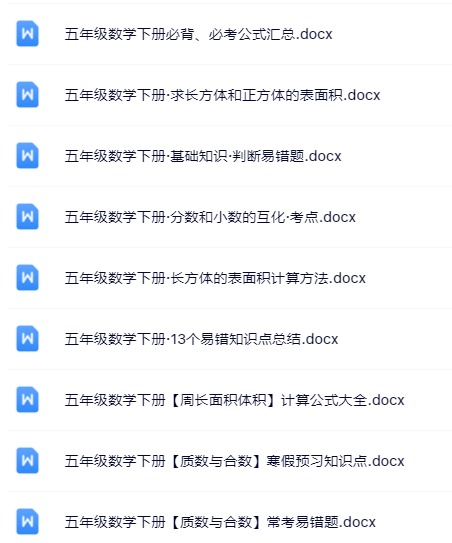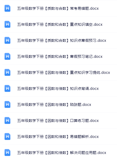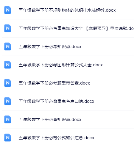 | 🚀立即一键打包下载!100套五年级下册数学精品资料无水印打包送!限时免费保存,先到先得! | |