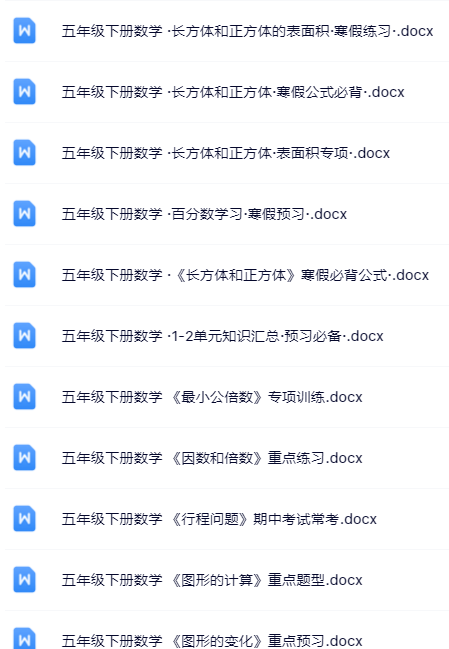 | 100套打包!五年级下册数学精品资料一键打包下载【只提供优质无水印资料打包】 | |