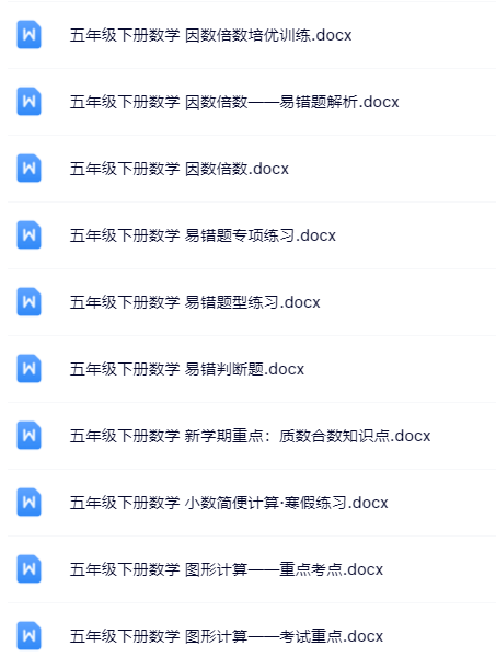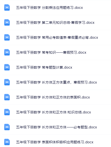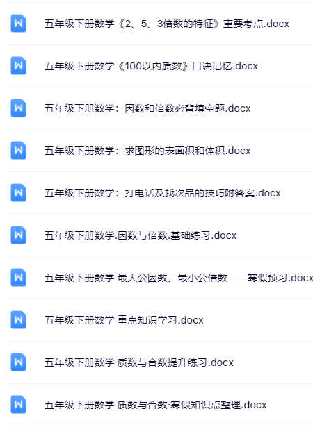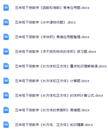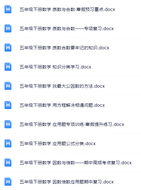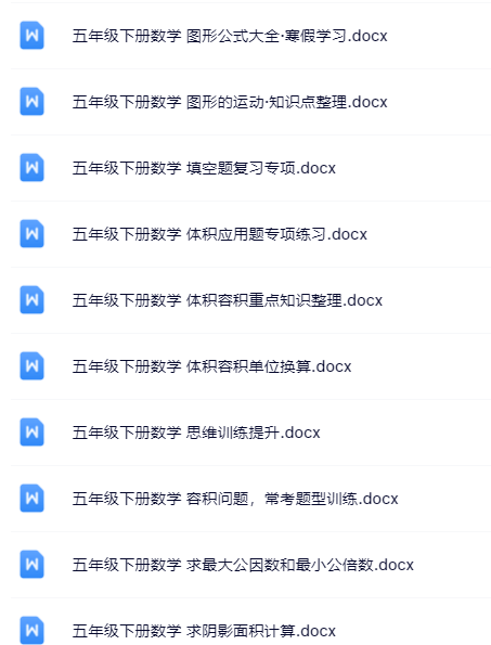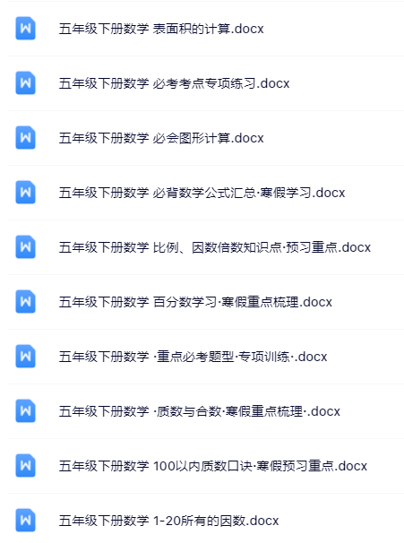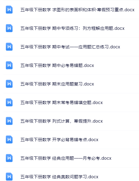 | 【立即一键打包下载】五年级数学下册100套精品资料,优质无水印,备考冲刺一步到位!错过再无! | |