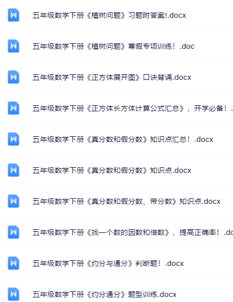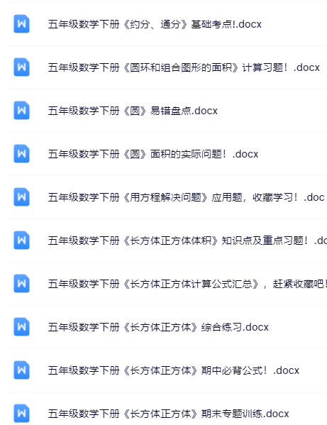 | 【立即一键打包下载】五年级下册数学100套精品资料库,优质无水印秒速保存,打造高效学习闭环!错过再无! | |