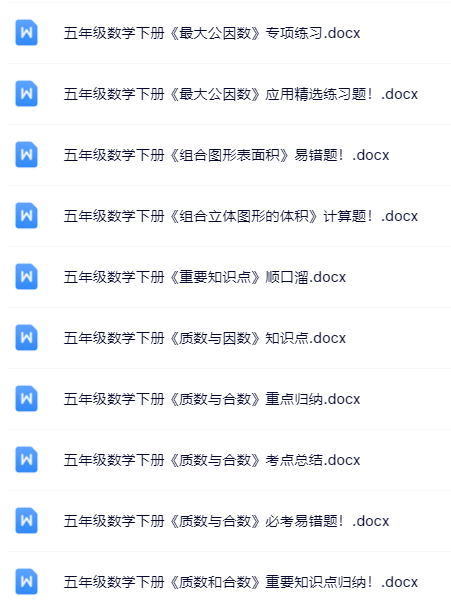 | 100套打包!五年级下册数学精品资料一键打包下载【只提供优质无水印资料打包】——全覆盖教材考点,拿走即用,秒速获取学习神器,家长教师速存必备! | |