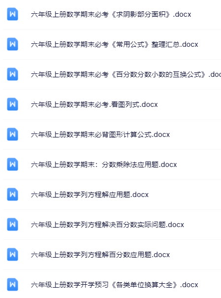 | 【立即一键打包下载】六年级上册数学100套无水印精品资料,0广告、0杂质、极速获取,提分就这么简单!错过再无! | |