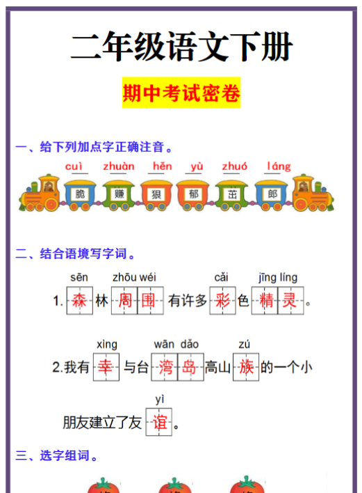 | 🚀 立即一键下载!小学二年级语文期中冲刺密卷+可编辑答案,限时免费获取,高分就在此刻! | |