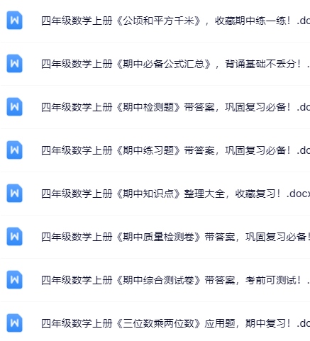 | ✅新版期中打包38套!小学四年级上册数学期中精品测试卷✅可编辑高清无水印!一键快速下载,抢先获取全套提分密卷,备考效率直飞升!限时免费领取,手慢无! | |