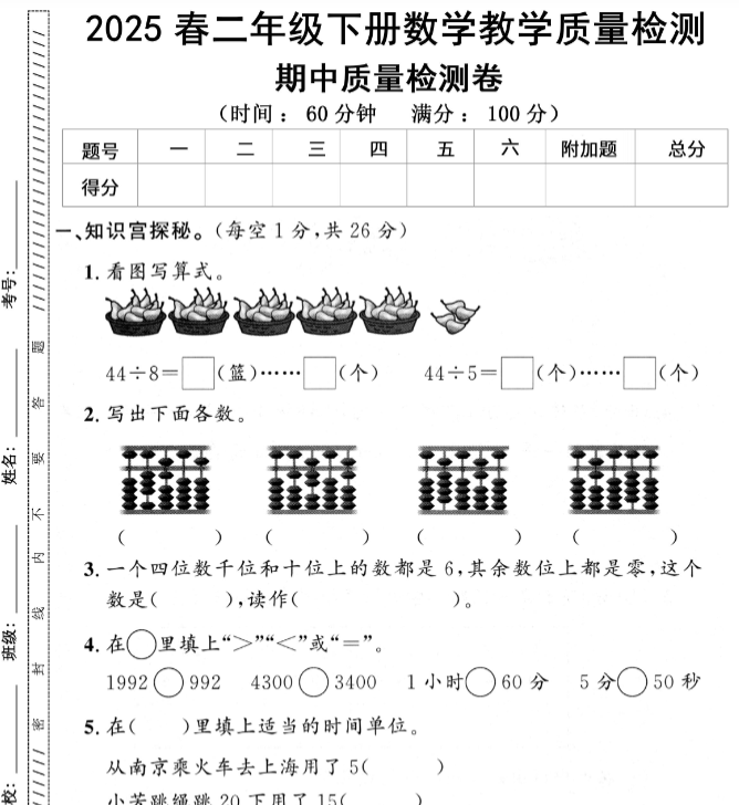 | ⚡️一键快速保存!新版小学二年级数学期中5套密卷(苏教版)抢先下载!高清无水印、答案详解同步打包,备考冲刺高效速取,家长教师抢鲜必备!错过再等一年! | |