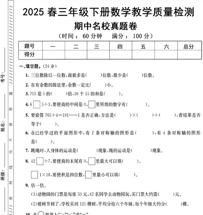 | 【立即一键下载】小学三年级数学北师版期中5套卷,精准复习,快速提分!错过再无! | |