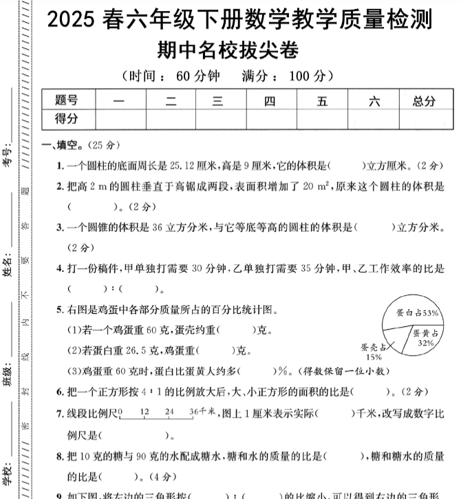 | 🚀限时免费一键保存!2024苏教版六年级数学期中5密卷+答案,立即打印开刷,冲刺90+! | |