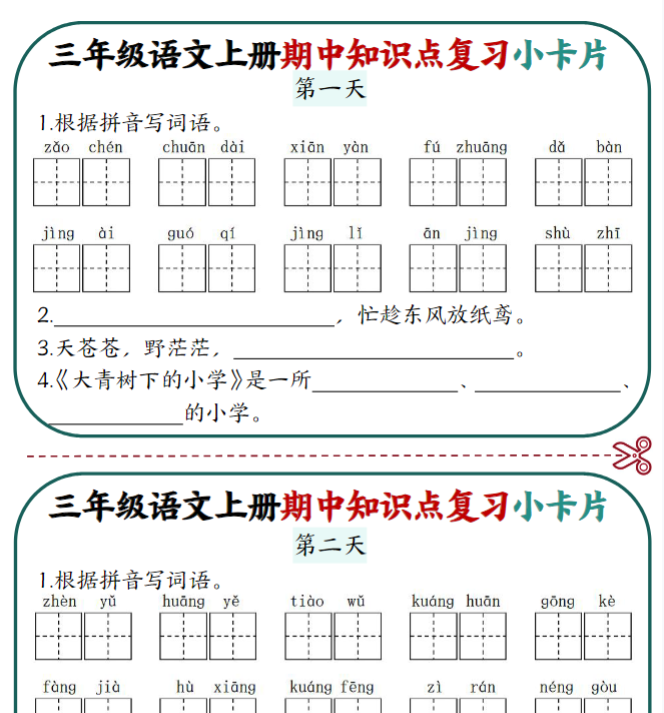 | 三上语文期中复习小卡片:基础知识+阅读理解+作文提分(高清可打印版) | |