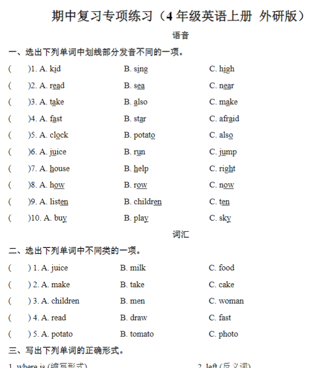 | 【外研版专用】四年级英语期中冲刺资料包 → 一键下载,高频考点全拿下! | |