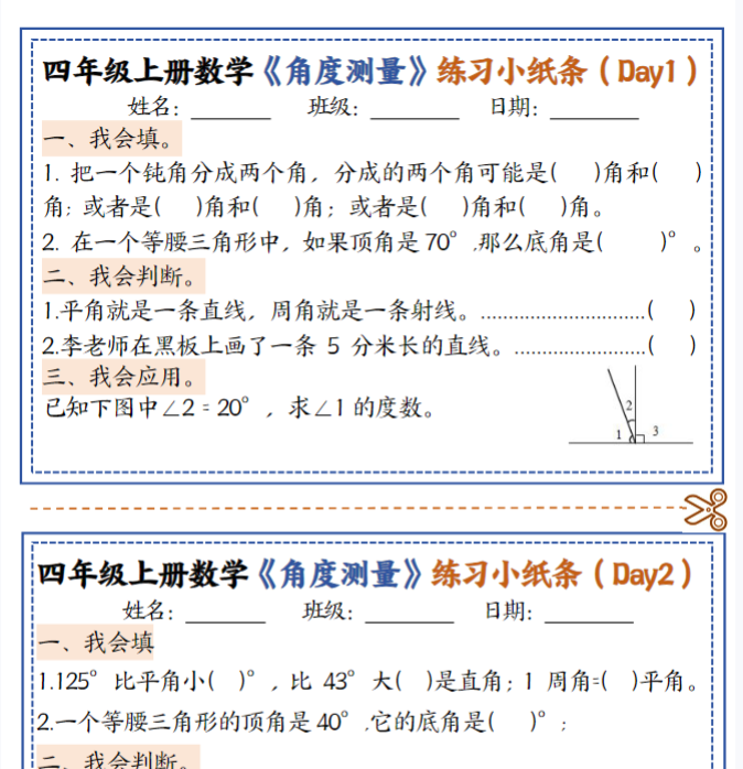 | 一键快速保存!四年级上册数学角度测量复习小纸条 —— 精准掌握用量角器画角、读角技巧,期末冲刺限时领取,手慢无! | |