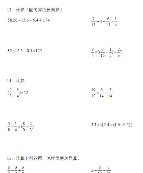 | 32页小升初分数混合运算计算题25题特训(专项练习)人教版六年级下册数学 | |