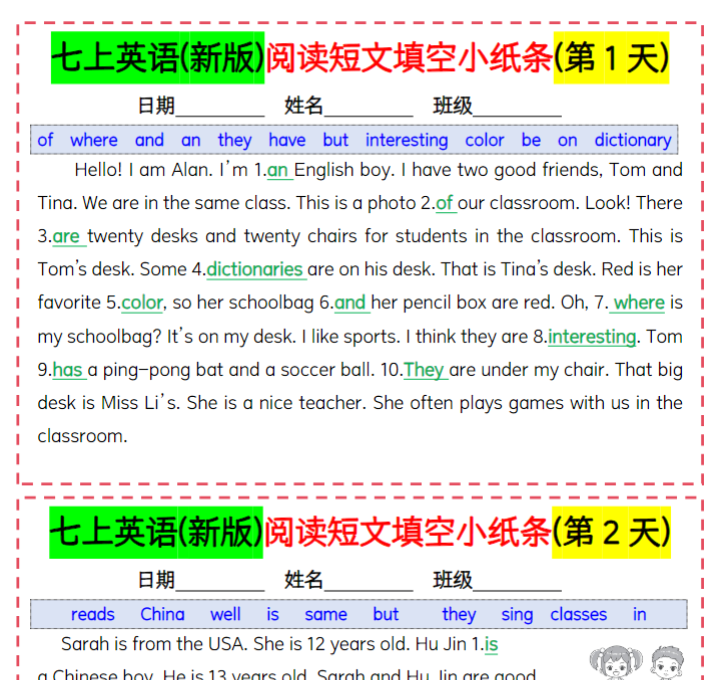 | 【立即一键下载PDF】七上英语阅读填空神助攻,22页提分利器在手,考试不慌! | |