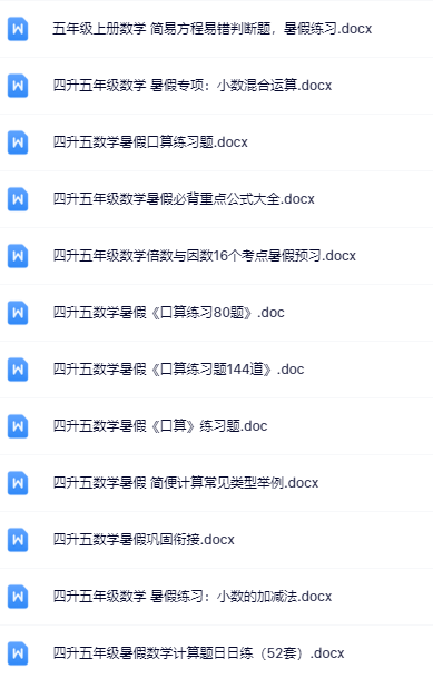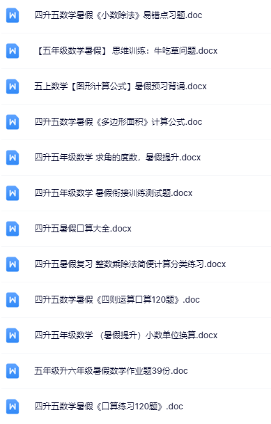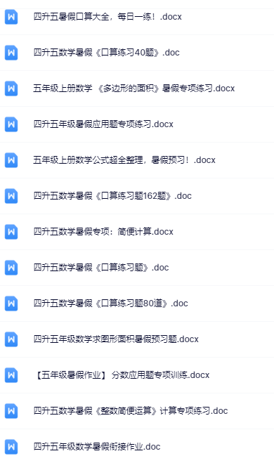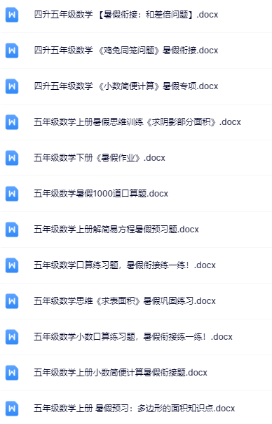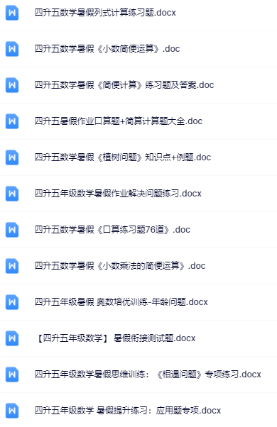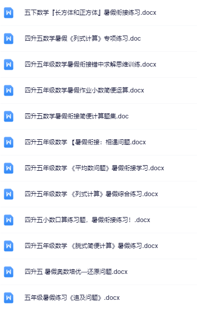 | 四升五暑假数学资料大全集【高清无水印+可编辑+持续更新】——一键快速保存,即刻获取高效学习方案,错过再无!支持随时下载更新,小升初衔接必备神器,助孩子轻松领跑五年级数学! | |